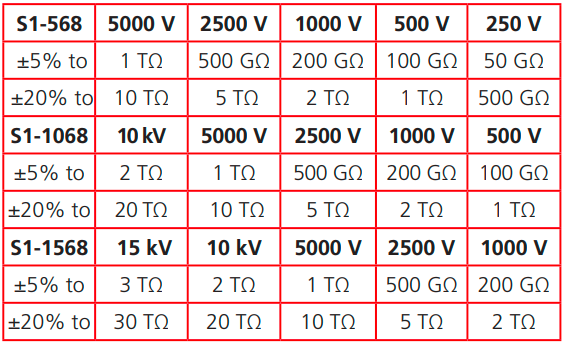 S1-568 10 kΩ 至 15 TΩ |