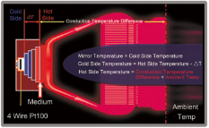 KGT-DP 采用四級(jí)增強(qiáng)型帕爾貼冷泵,理論溫差為107℃,制冷強(qiáng)勁,使高溫環(huán)境下測(cè)量更低露點(diǎn)成為可能。熱管散熱的熱傳導(dǎo)效率比普通的純銅高數(shù)十倍,甚至上百倍; 而柔性導(dǎo)熱材料使冷泵基體與散熱器緊密無(wú)縫連接,其導(dǎo)熱系數(shù)是普通導(dǎo)熱膏的近30倍。
